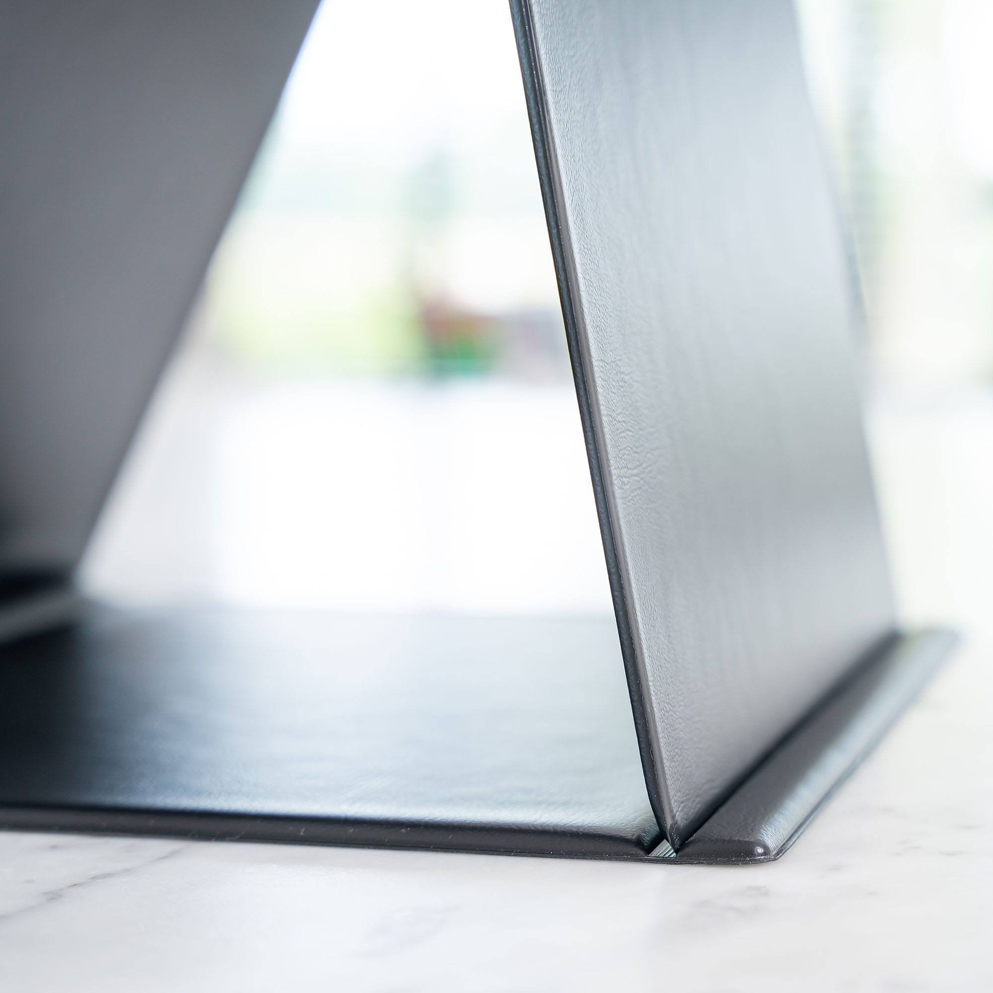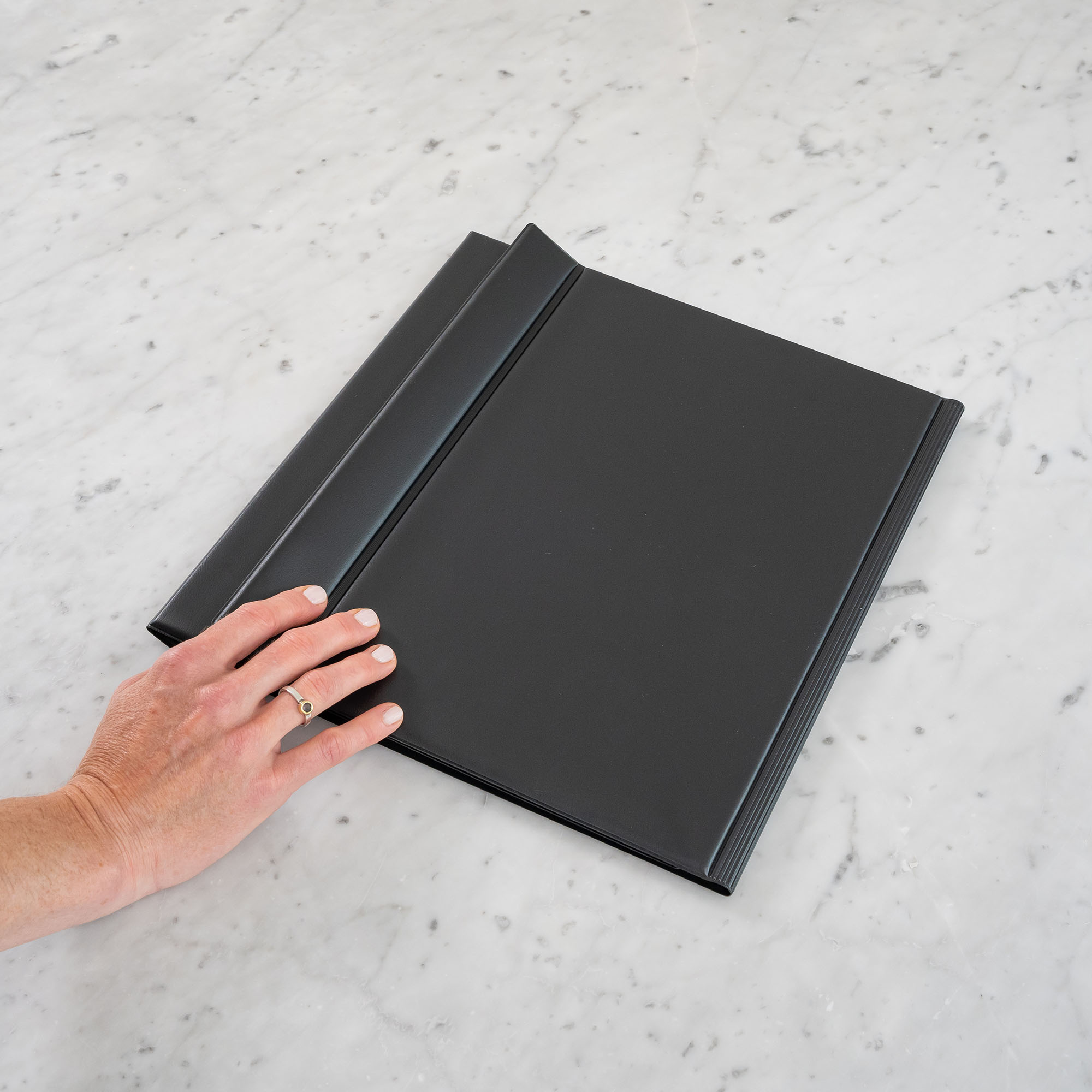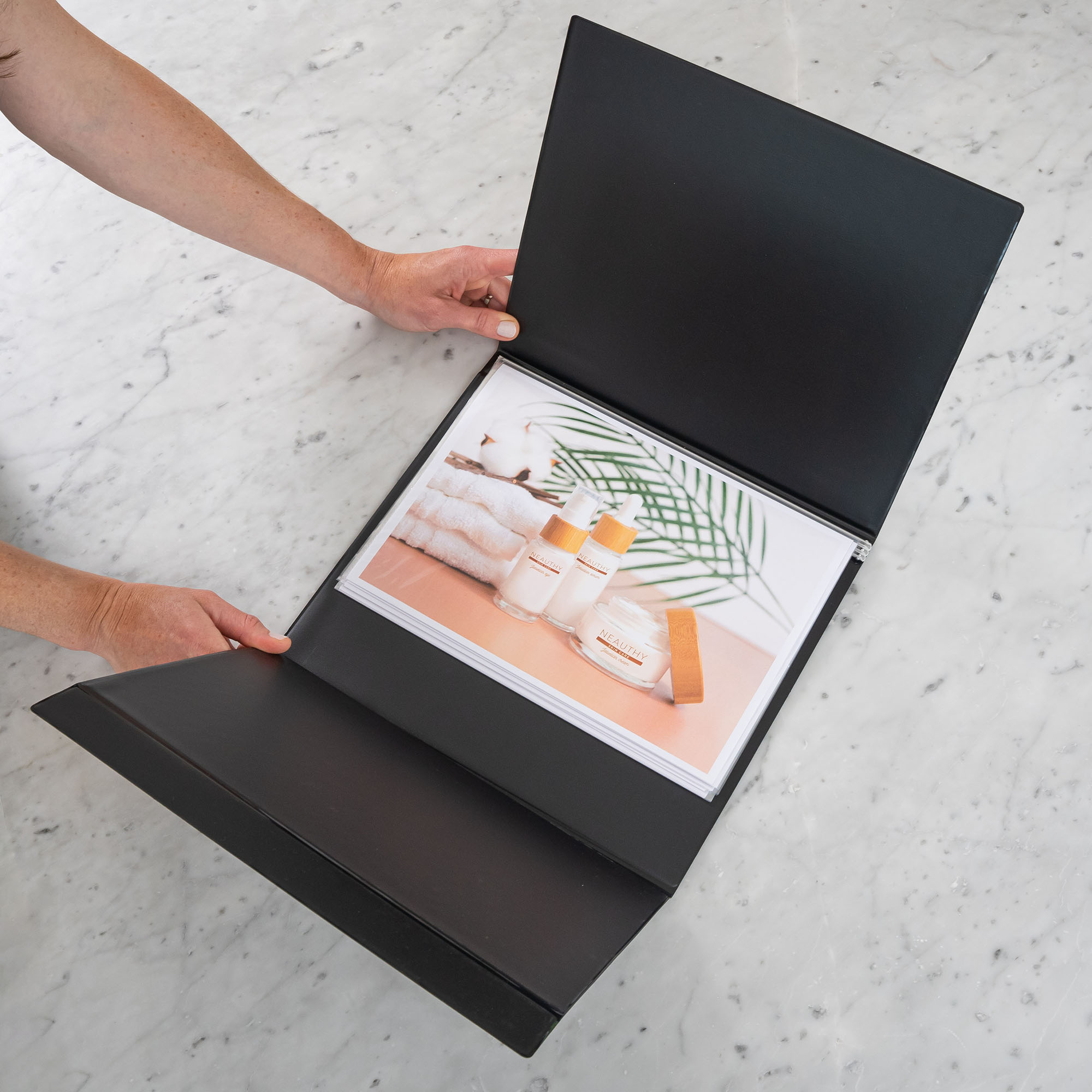 Rillstab table flipchart A4 landscape format, made of plastic material. Provided in the back with the Rillstab mechanism filled with 20 environmentally friendly anti-reflex pockets made from acid-free polypropylene, to insert documents on the right side. Turning the pockets is very easy and the pockets do not fall back. The table flip chart is easy to set up in a triangular shape, can be folded quickly and takes up little space. Ideally suited for presentations to small groups.