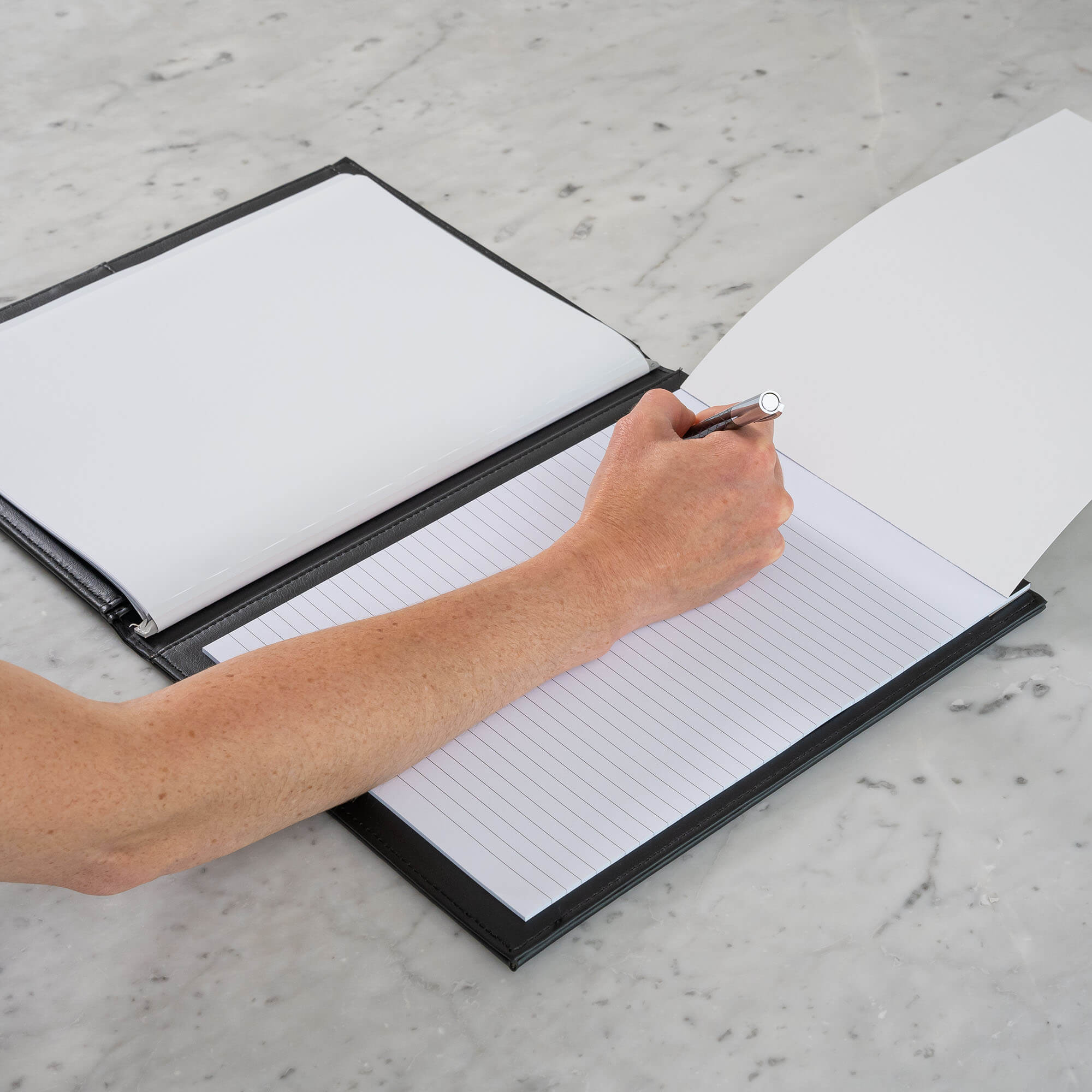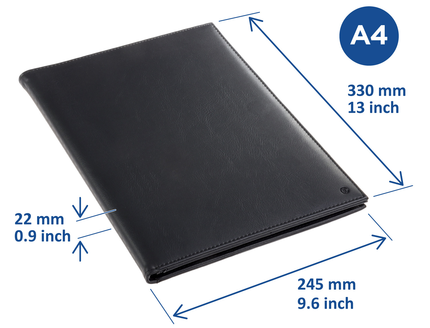 This A4 display book is made of artificial leather in the color black and is available with 10 pockets ( = 20 visible sides) made from acid-free polypropylene. It is equipped with the well-known Rillstab mechanism. The pockets are held in a channel by means of rods. This allows you to browse like in a book. And you have no image loss with, for example, A4 documents. The number of channels depends on the number of pockets. As a result, the back widths can vary.